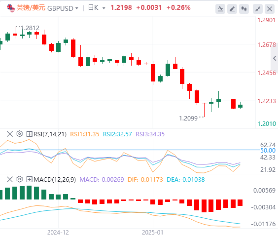 在年初遭受大幅亏损后,英镑/美元未能聚集复苏动能,连续第三周收跌。该货币对周一早盘获得牵引力,交投于1.2200上方。