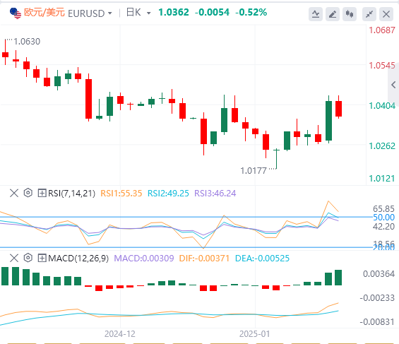 欧元/美元周一录得强劲上涨,但周二早盘失去牵引力。截至发稿时,该货币对当日下跌约0.4%至1.0375。