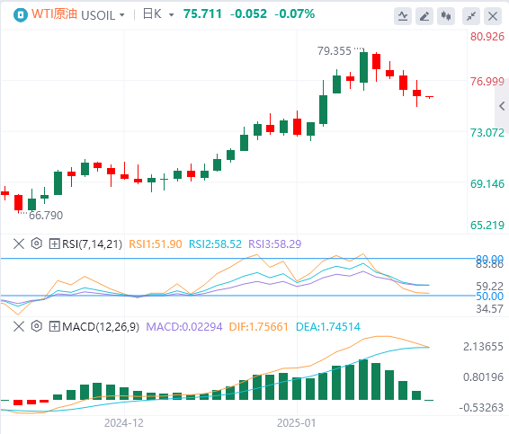 周三亚盘,原油交投75.71附近。美国总统唐纳德·特朗普(DonaldTrump)在就职首日宣布国家能源紧急状态,引发市场对美国石油产量增长的担忧,导致油价下跌。市场普遍预计2025年石油供应将出现过剩。美国能源信息署(EIA)周二重申其预期,认为今年和明年油价将继续下跌。EIA经济学家表示:“全球石油及其他液体燃料产量的强劲增长和需求增长的放缓对价格形成下行压力。”