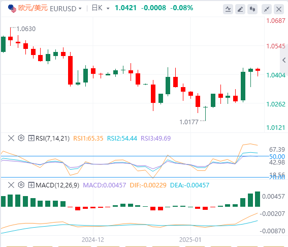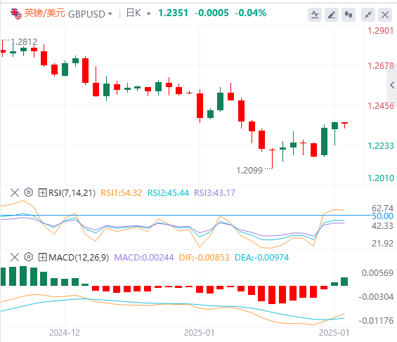 英镑:截止发稿,英镑/美元徘徊于1.2352附近。英镑/美元上周二上涨,收报1.2355,涨幅0.24%。英镑看到英国劳动力数据结果喜忧参半,但英国自己的劳工部门对这些数据持保留态度。在美国方面,美国总统唐纳德·特朗普淡化了他在竞选期间承诺的对所有美国贸易伙伴实施全面的第一天关税的承诺,转而将新的、更精细的关税威胁集中在美国的北美贸易伙伴加拿大和墨西哥上。技术面上,突破1.2320水平将为测试最近的阻力位1.2355–1.2370开辟道路。