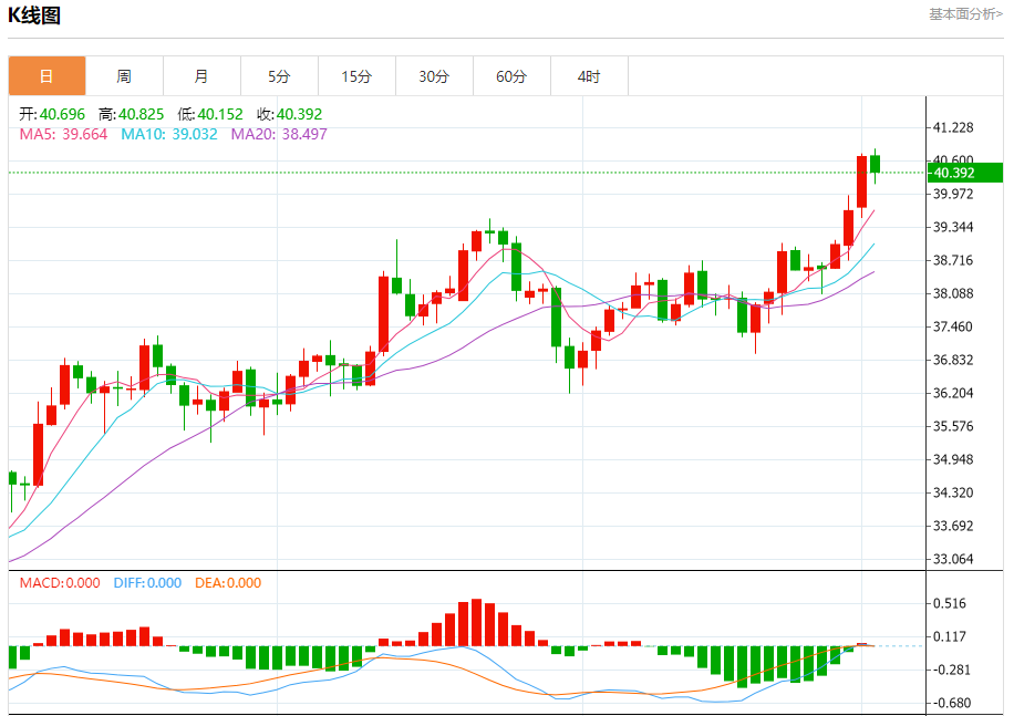 现货白银:截止北京时间20:23,现货白银下跌,现报40.352,跌幅0.82%。纽市盘前,(白银)价格在最后一个交易日上涨,此前其早期下跌旨在收集其先前的上涨,并卸载其在(RSI)上的明显超买条件,试图恢复并开始新的牛市,主要看涨趋势占主导地位,其交易伴随着对该轨道的支持性小偏差,来自其在EMA50上方交易的积极压力继续存在,加强了积极势头。
