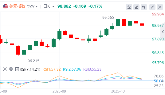 鲍威尔表示,虽然政府关门前的数据显示经济增长可能强于预期,但他指出美国就业市场的下行风险已经上升。他承认,他们缺乏的政府数据是“黄金标准”,但补充说,美联储可以获取私人数据来源作为替代方案。随着鲍威尔现在暗示量化紧缩政策可能即将结束,明年进一步降息的理由似乎正在增强。美元看涨势头也在减弱。