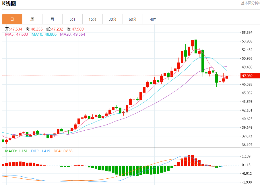 现货白银:截止北京时间20:23,现货白银上涨,现报47.980,涨幅0.93%。纽市盘前,在上一次日内交易中,(白银)的价格小幅上涨,在短期内看跌修正趋势占主导的情况下,由于其交易价格低于EMA50而延续的负面压力进一步加剧了下行压力。另一方面,我们注意到在相对强弱指标上出现了积极的交叉,在其释放超买状态后,为未来一段时间内实现更多收益铺平了道路。