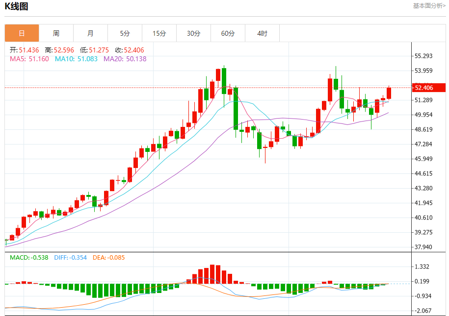 现货白银:截止北京时间21:20,现货白银上涨,现报52.389,涨幅1.81%。纽市盘前,(白银)价格在最近一个交易日持续上涨,攻击52.35美元的阻力,这一阻力代表了我们在之前的分析中的潜在目标,尽管达到了超买水平,但相对强度指标上出现的积极信号支持了这一目标,并且其在EMA50上方的交易代表了动态支持,提供了新的动力,增加了突破阻力的机会。
