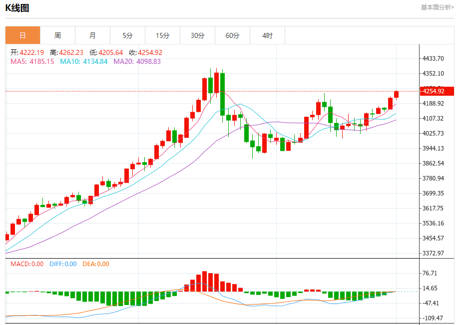 现货黄金:截止北京时间21:20,现货黄金上涨,现报4254.90,涨幅0.85%。纽市盘前,(黄金)价格在最后一个交易日上涨,以确认突破了4,225美元的关键阻力,主要看涨趋势占主导地位,并与该轨道的支持性次要趋势线一起交易,相对强度指标出现了积极信号,尽管达到了超买水平,这可能会减少即将到来的收益。