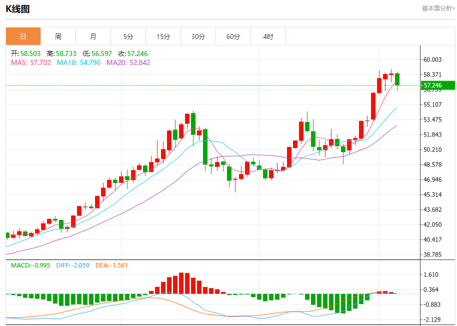 现货白银:截止北京时间21:20,现货白银下跌,现报57.239,跌幅2.13%。纽市盘前,(白银)价格在最后一个交易日下跌,原因是稳固阻力稳定在58.80美元,在达到超买水平后,相对强度指标上出现了负面信号,试图获得可能有助于其恢复和再次上涨的看涨势头,特别是在短期基础上沿着主要和次要趋势线交易。