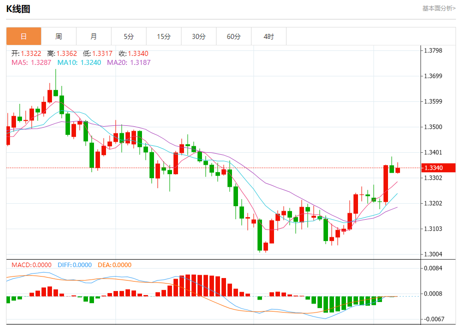 英镑/美元:截止北京时间21:20,英镑/美元上涨,现报1.3341,涨幅0.11%。纽市盘前,由于1.3350阻力位保持稳定,GBPUSD在最后的日内交易中收盘走低,以巩固其先前上涨的收益,并试图获得可能帮助其反弹并突破该阻力位的看涨动能,同时由于其位于EMA50上方交易,且在短期内看涨修正趋势占主导,并沿着该趋势的支撑趋势线交易,加上相对强弱指标达到超卖水平,相对于价格走势被夸大,显示出看跌动能的成交量可能迅速减弱。