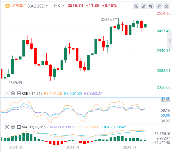 美国6月S&P/CS20座大城市房价指数年率的公布值为6.5%,这一数据略高于市场预期的6%,显示出美国房地产市场在经历了一段时间的稳健增长后,仍然保持着一定的增长势头。然而,与前几个月的增速相比,这一数据也透露出房地产市场可能正在逐渐步入一个更为平稳的增长阶段。从金价的角度来看,房价指数的微幅上升可能对金价产生双重影响。一方面,房地产市场的稳健增长通常被视为经济健康的一个标志,这可能会增强投资者对整体经济前景的信心,进而减少对避险资产如黄金的需求。在这种情况下,金价可能会受到一定的压力。