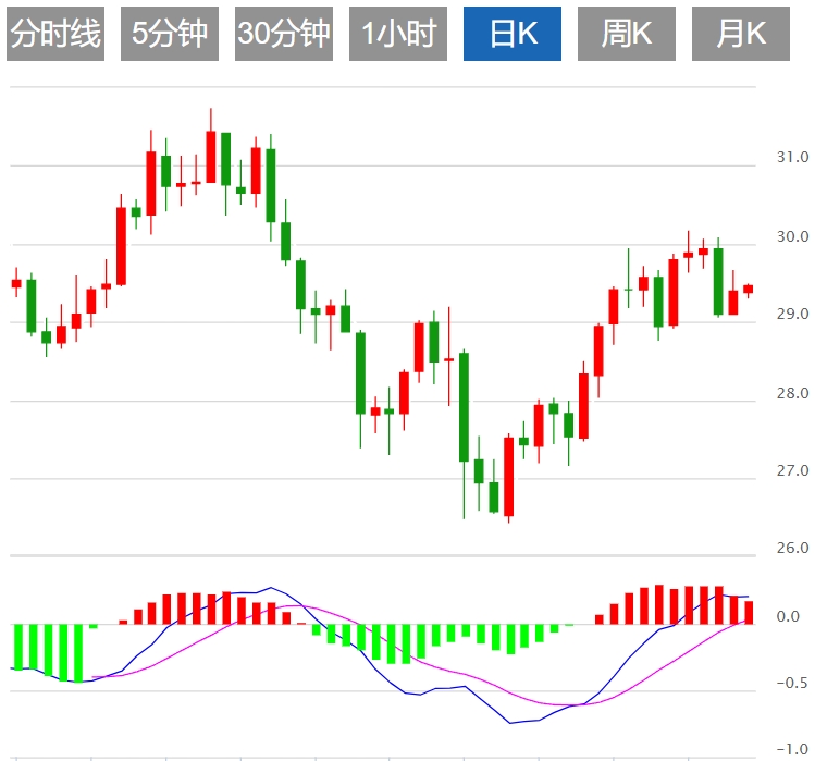 今天的预期交易区间在 28.80 美元支撑位和 29.70 美元阻力位之间。