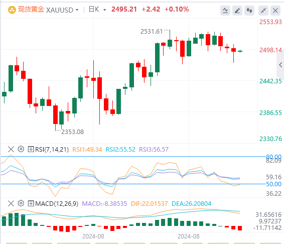 周二晚间公布的美国8月ISM制造业PMI从46.8上升至47.2,低于预期的47.5,数据仍低于50线的收缩/扩张水平,这是经济放缓的一个迹象。ISM报告发布后,美国10年期国债收益率下降,黄金价格在触底2473后,开始反弹,反弹近20美元。