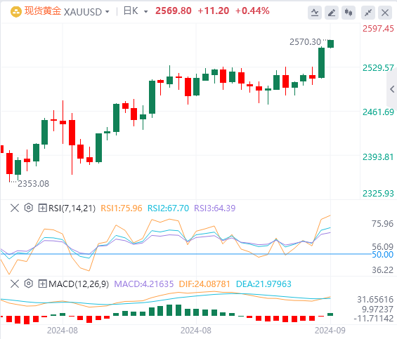黄金昨日多头强势突破震荡箱体中枢上边压力位2528一线,打开了上涨空间,延续多头趋势行情,进入了新的历史高位。从k线上看,多头昨日收强势大阳线,显示多头突破后力度非常强势,后市将进一步延续上涨趋势行情不变。综合MACD指标看,快慢线0轴上运行,表明多头开始主导行情。策略上建议顺多头趋势行情支撑位埋伏多单为主思路。