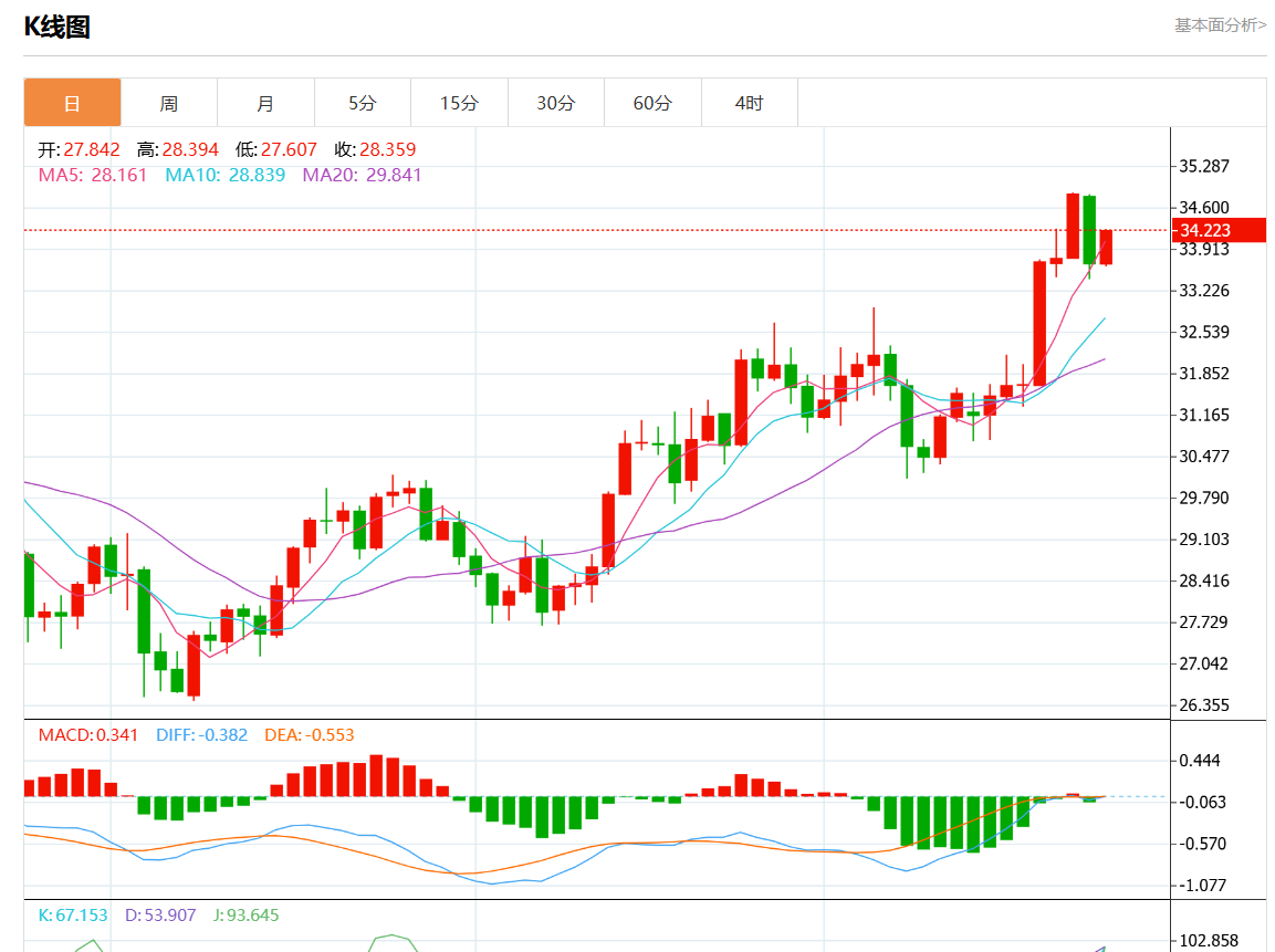 周四欧市盘中,现货白银报34.153,涨幅1.41%。