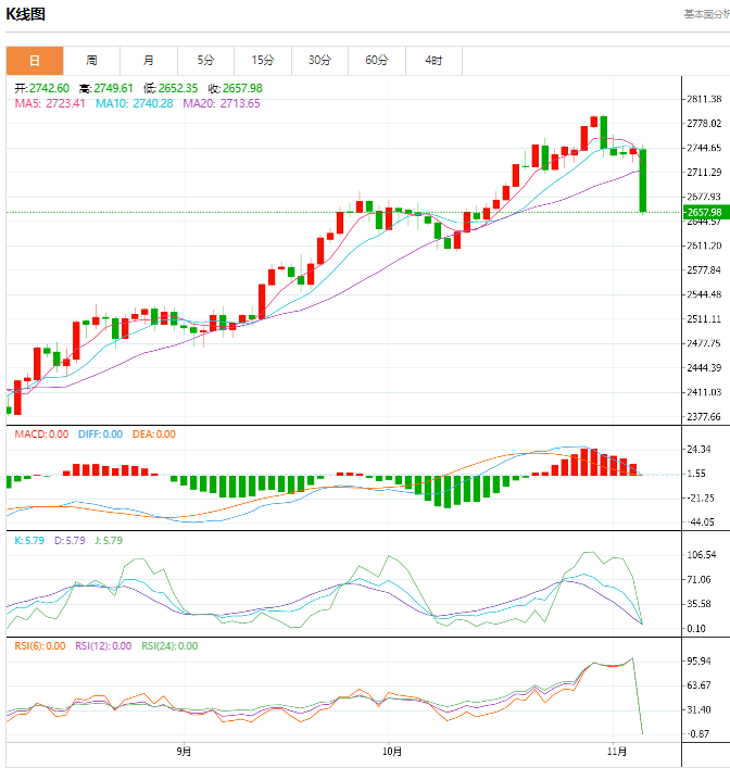 随着IEA、OPEC纷纷下调今年全球石油需求预期,充足的供应或抵消中东地缘政治冲突引起的石油产量担忧,风险溢价再度走弱,国际原油价格延续弱势空头单边下行走势。美国大选结果即将出炉,以及接下来还将迎来美联储利率决议,市场普遍预期将进一步降息25个基点,日内有多个重要财经数据将公布,地缘政治风险仍存,针对当前多重不确定因素,交易者选择谨慎持仓为主。