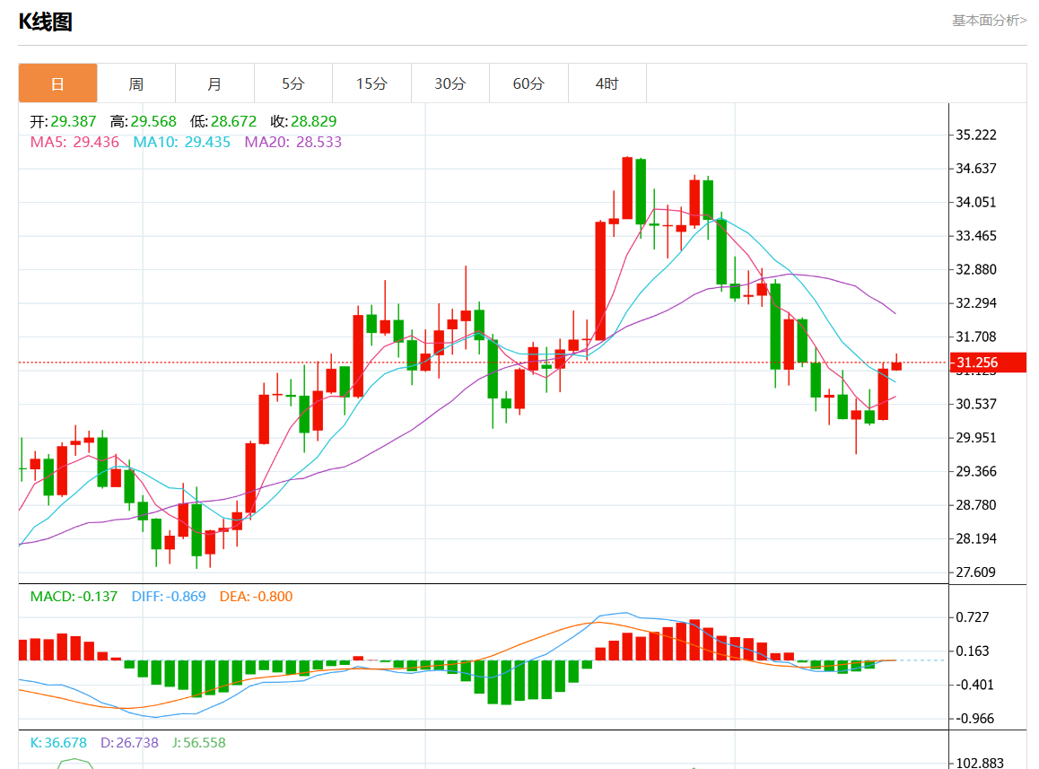周二欧市盘中,现货白银报31.223,涨幅023%。