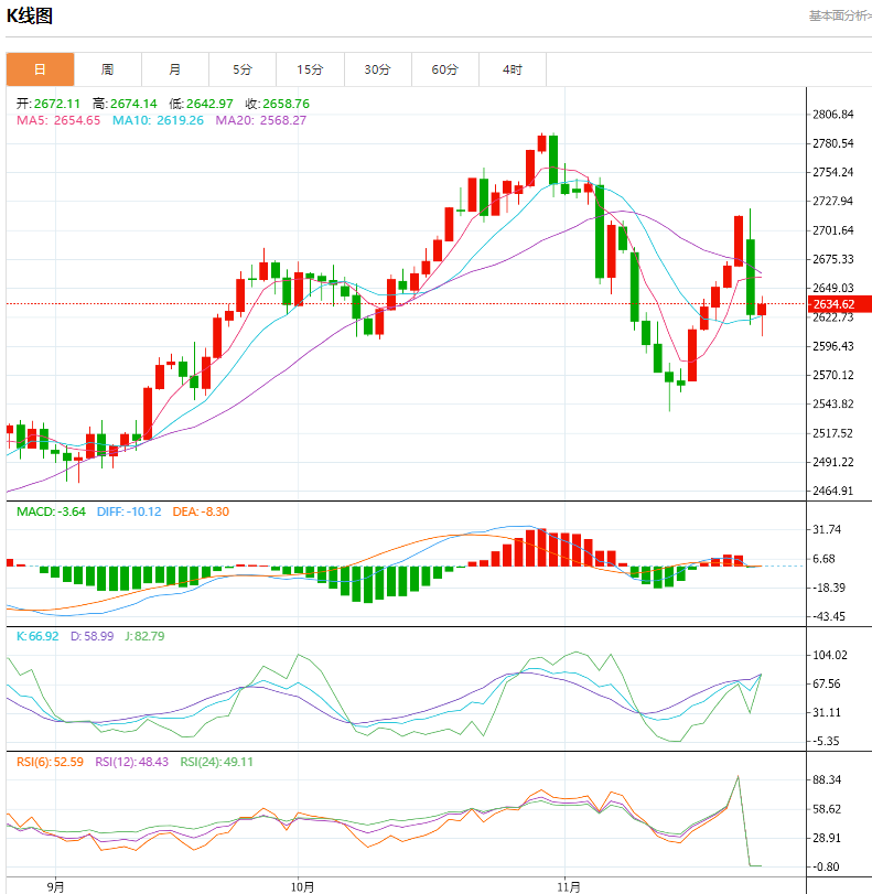 星期二(11月26日)。市场消息传出以色列和真主党接近达成停火协议,中东地缘局势缓和,国际原油价格在经历上周连续反弹回升后迎来压制回落,短线或重回弱势空头格局运行。