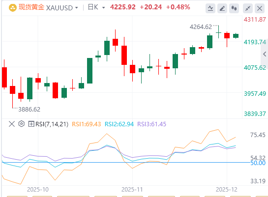 据CME“美联储观察”:美联储12月降息25个基点的概率为89.2%,维持利率不变的概率为10.8%。12月降息概率的提升,或将继续推动金价上行。