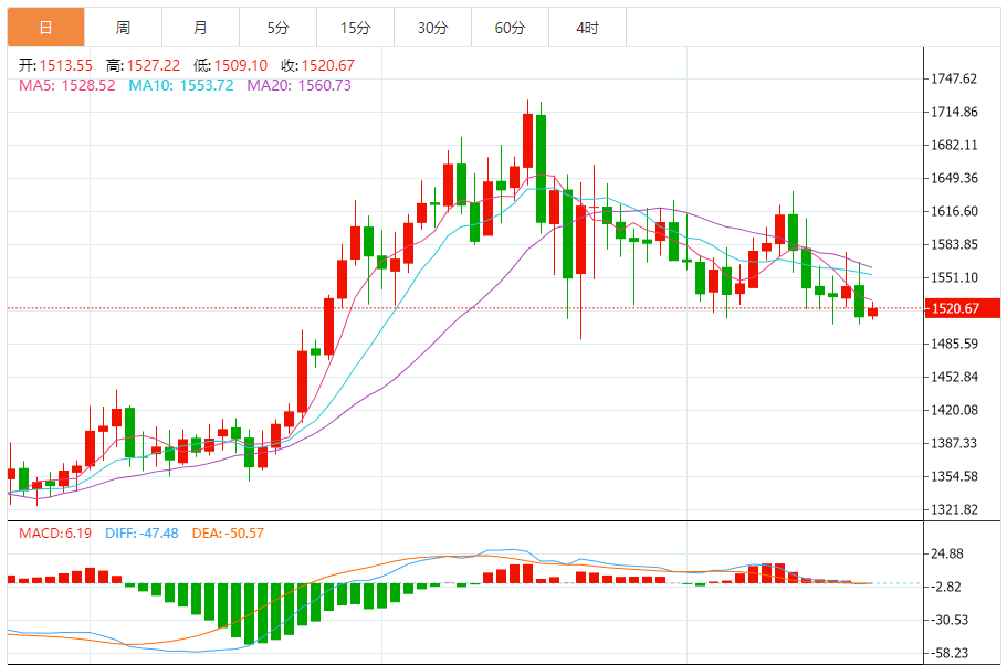 铂金价格走势图今日最新铂金行情(2025年11月21日) 今日最新铂金行情:1518.90 备注:以上铂金价格仅供参考,请以官方价格为准。