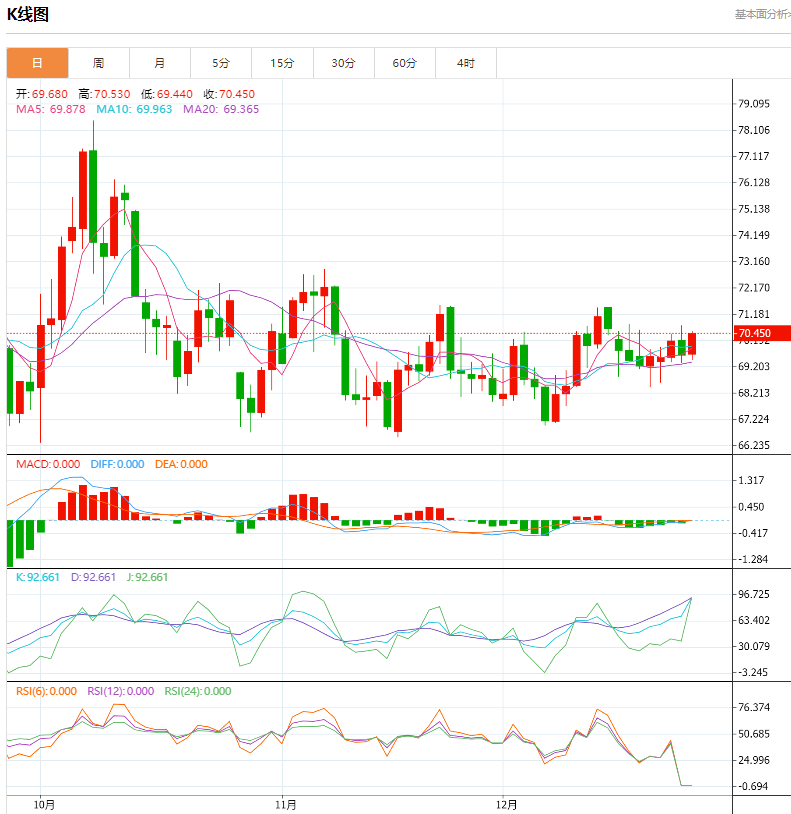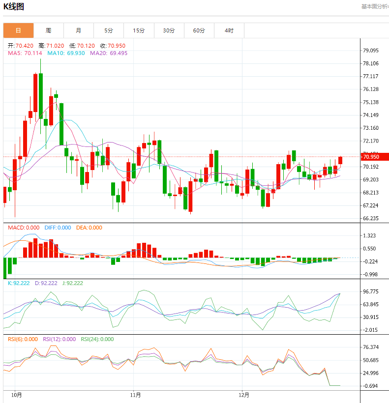 上周,受美国原油库存降幅大于预期推动,国际原油价格周线在年底前的淡静交投中迎来上涨。 原油盘面分析: 原油H4级别再次遇阻回调,并在48日多空分界线上方运行。此外,ACD双线和量能柱在零轴附近构成顶背离。由于年底假期季节性因素的影响,原油市场的波动性可能会有所放大。若库存数据继续走低,