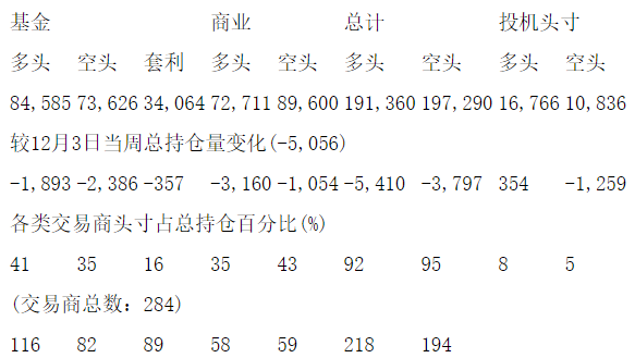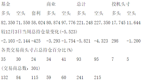 美国商品期货交易委员会(CFTC)最新公布截止12月10日当周COX铜期货和期权分类持仓报告: 合约单位:25000磅总持仓量:238993