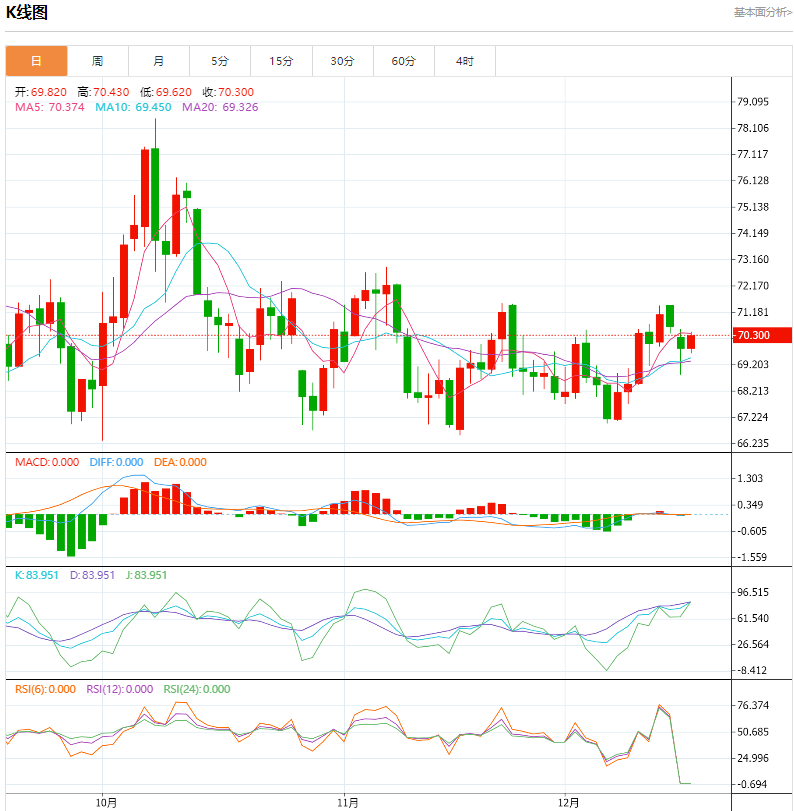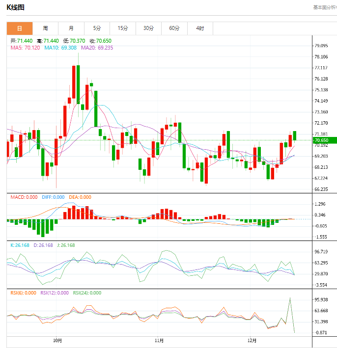 星期三(12月18日),根据亚洲大国公布的消费支出数据显示,不利于需求预期回暖,市场担忧情绪加重,以及投资者在美联储做出利率决定前保持谨慎态度,昨日国际原油价格延续震荡回落,在69关口完成深度回踩洗盘。 原油盘面分析: 原油H4级别小幅回落,并在48日多空分界线附近运行。此外,ACD双线和量