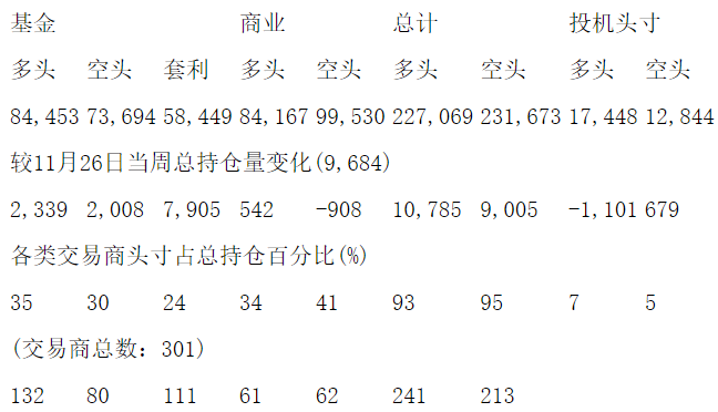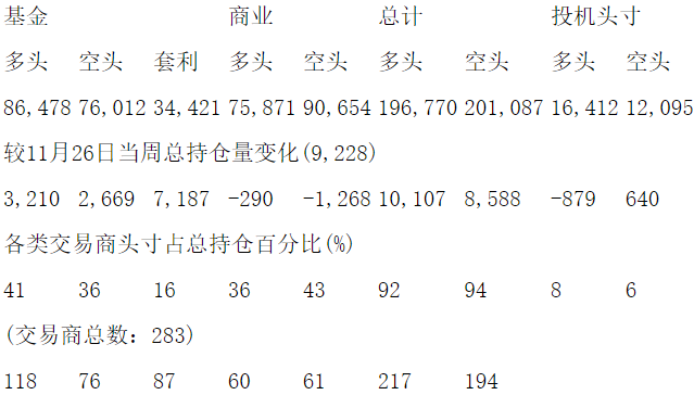 美国商品期货交易委员会(CFTC)最新公布截止12月3日当周COX铜期货和期权分类持仓报告: 合约单位:25000磅总持仓量:244517