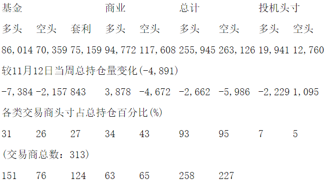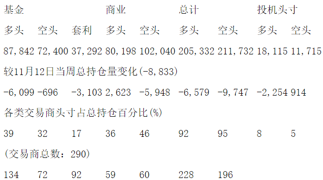 美国商品期货交易委员会(CFTC)最新公布截止11月19日当周COX铜期货分类持仓报告: 合约单位:25000磅总持仓量:223447