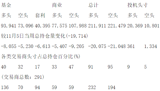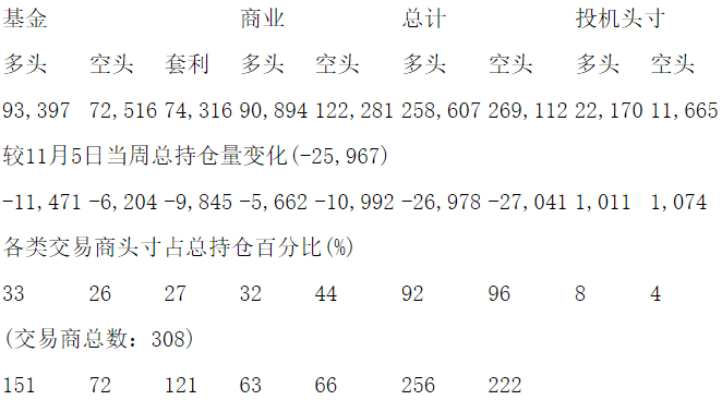 美国商品期货交易委员会(CFTC)最新公布截止11月12日当周COX铜期货分类持仓报告: 合约单位:25000磅总持仓量:232280