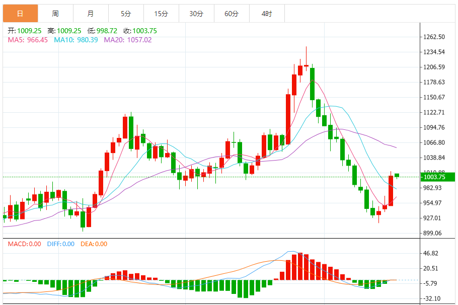 铂金价格走势图今日最新铂金行情(2024年11月19日) 今日最新铂金行情:965.90 备注:以上铂金价格仅供参考,请以官方价格为准。