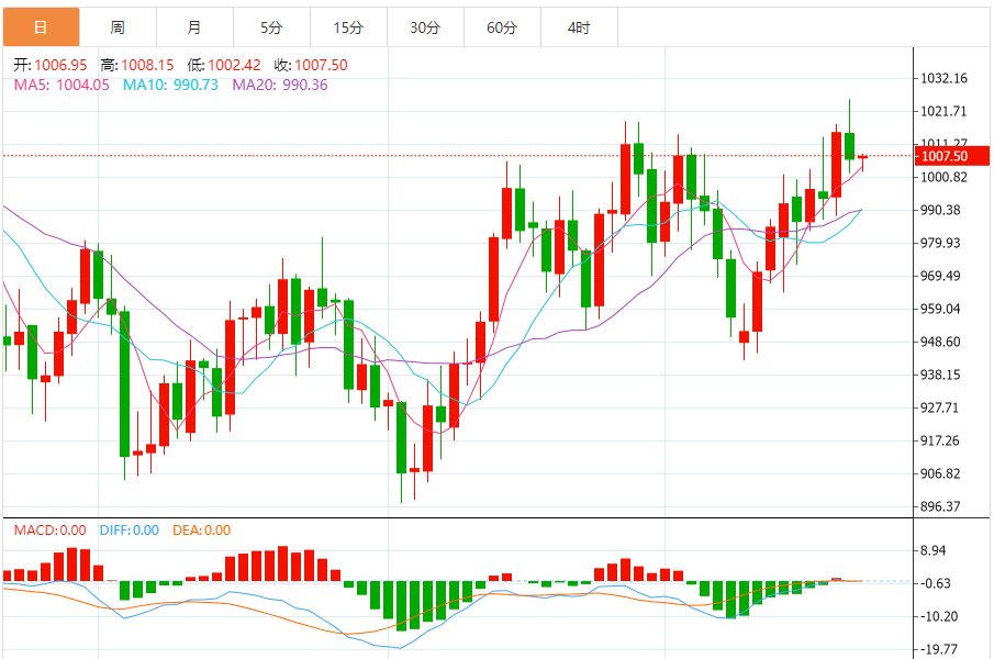 铂金价格走势图今日最新铂金行情(2024年10月22日) 今日最新铂金行情:1006.80 备注:以上铂金价格仅供参考,请以官方价格为准。