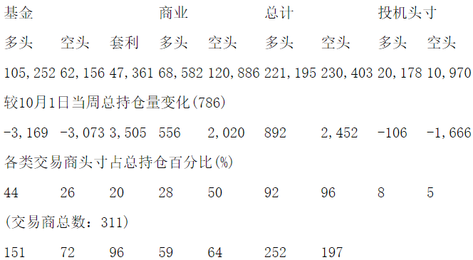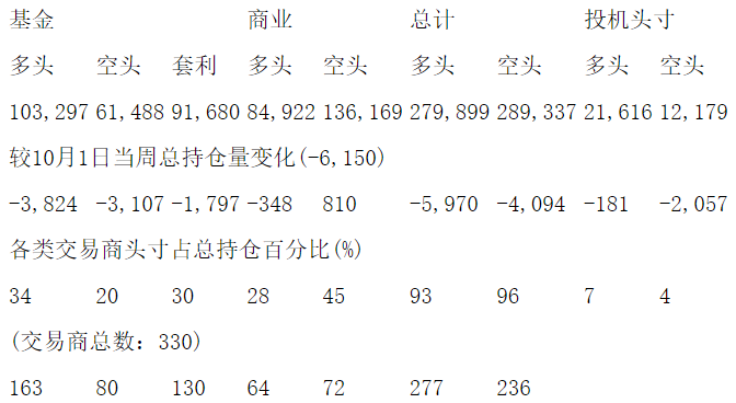 美国商品期货交易委员会(CFTC)最新公布截止10月8日当周COX铜期货和期权分类持仓报告: 合约单位:25000磅总持仓量:301516