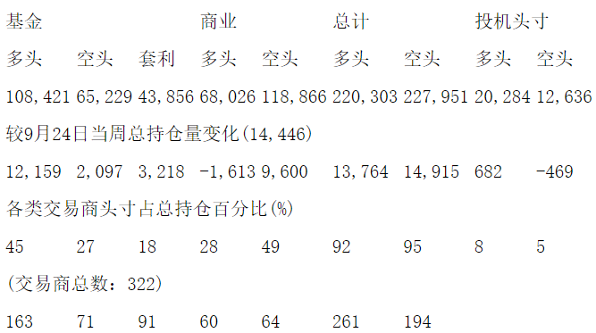 美国商品期货交易委员会(CFTC)最新公布截止9月24日当周COX铜期货分类持仓报告: 合约单位:25000磅总持仓量:226141