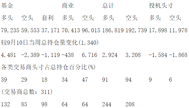 美国商品期货交易委员会(CFTC)最新公布截止9月17日当周COX铜期货和期权分类持仓报告: 合约单位:25000磅总持仓量:258958