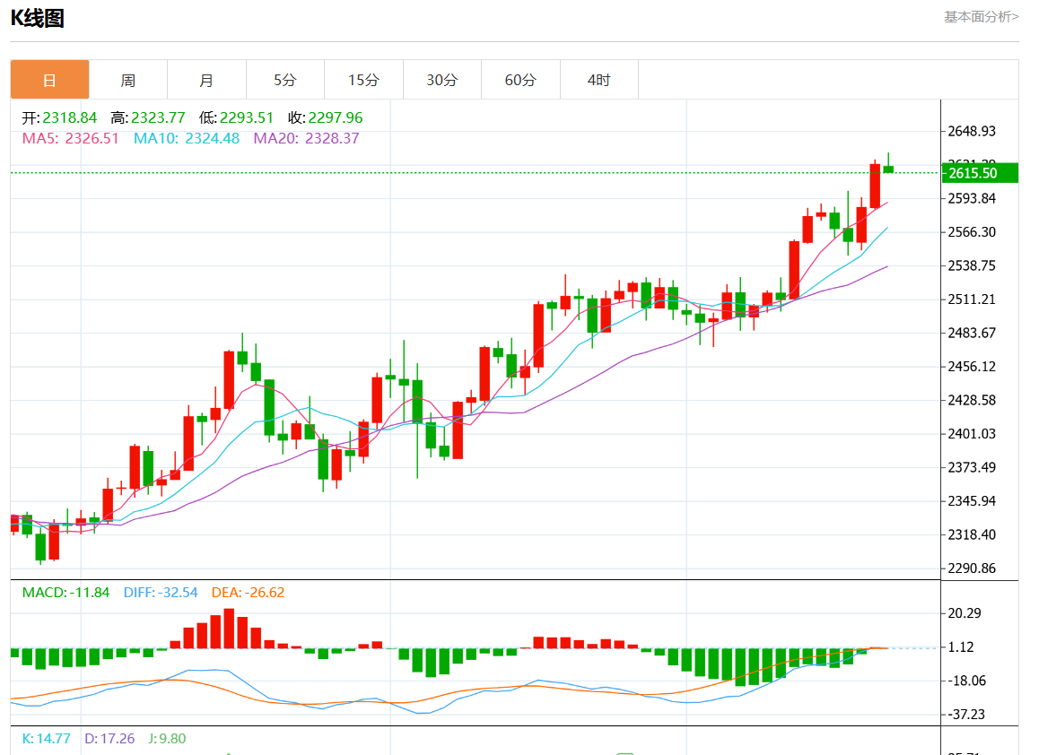 黄金、白银、原油、贵金属9月23日收盘情况: 因美联储再次大幅降息的预期升温,加之中东紧张局势进一步升温,周一现货黄金价格创下纪录高位。 现货黄金周一收盘上涨近0.3%,报2628.38美元/盎司。金价盘中最高触及2634.88美元/盎司,刷新历史新高。 TDcuriti商品策略主管Bartlk表示:“市场仍在消化美联储上周三的50个