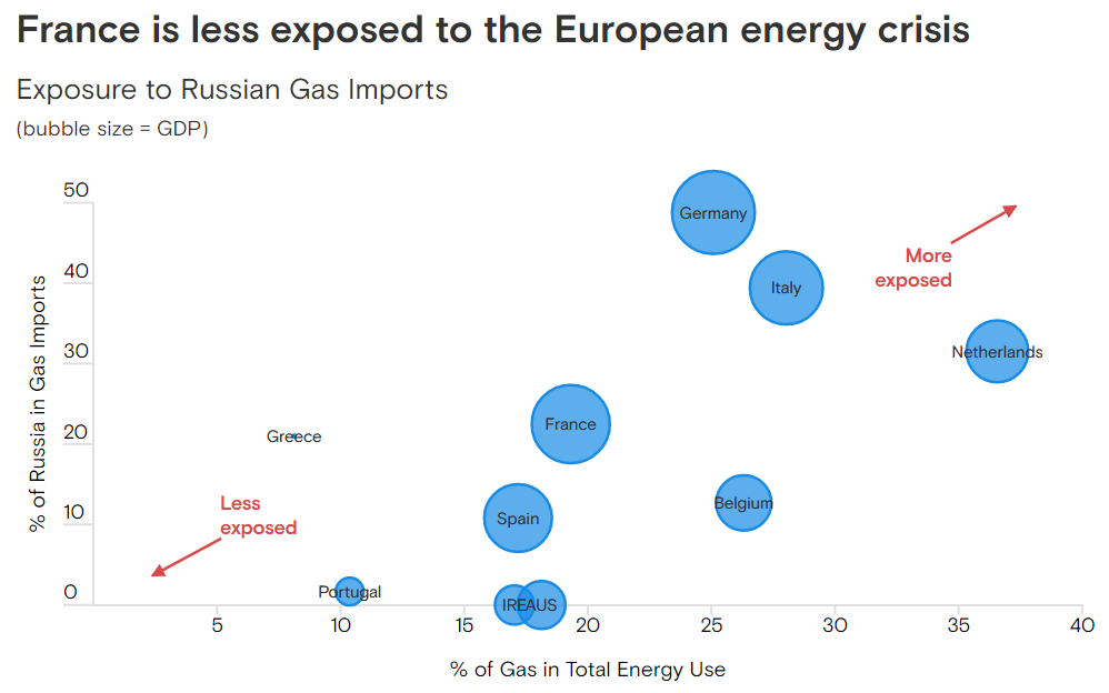 尽管面临俄罗斯入侵乌克兰、供应链中断和能源价格上涨等一系列挑战,但法国经济在2022年的大部分时间里仍能保持增长。高盛研究公司的一份新报告预测,美国将经历一段时间的疲软,但勉强避免衰退。 实际结果是好是坏取决于未来几个月G研究人员将关注的三个主题: 能源与经济 与其他欧洲国家相比,法国受欧洲大陆能源危