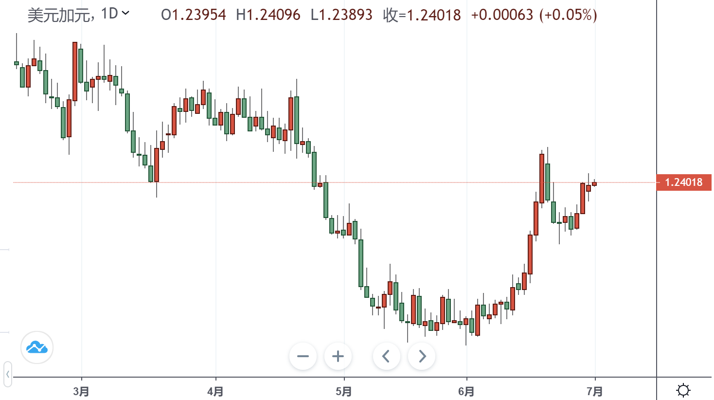 另一方面,刚刚公布的美国6月ADP就业人数好于预期,支撑美元上行,刷新日内高点。同时,加拿大4月GDP月率录得-0.3%,为2020年4月以来首次跌至负值,不过仍高于此前分析师预期的-0.8%。