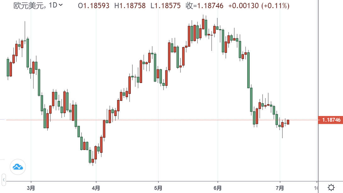 技术上,由于MACD看涨,且汇价自数日低点反弹修正,欧元兑美元升破1.1870可能会确认看涨形态。