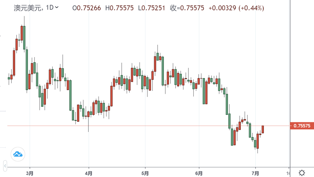 大体符合预期的利率决议出炉后,澳元表现平淡,澳元/美元自决议前的最高水平短线下挫超20点后迅速反弹、收复大部分跌幅,目前继续在0.7550上方整理。澳洲央行行长洛威(Philip Lowe)将于北京时间14:00发表讲话,澳元投资者或期望从中获得有关未来货币政策的蛛丝马迹,这也可能是澳元/美元走势的潜在催化剂。