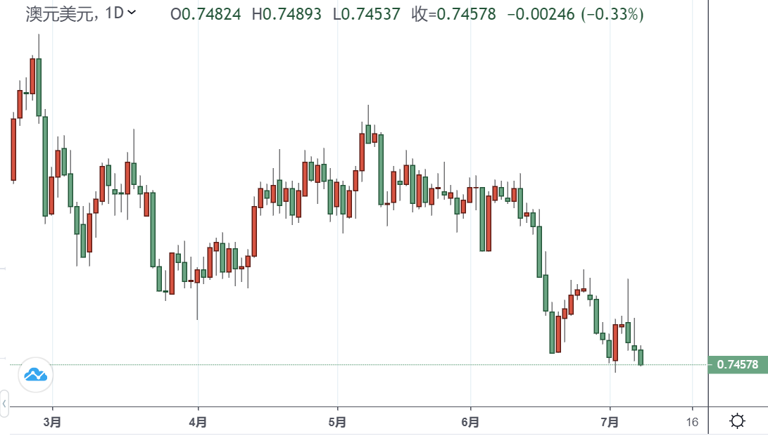 从技术角度来看,持续跌破之前的年持价低点0.7445附近,可能已经为持续下跌的延伸做好了准备。因此,接下来很有可能会下跌至下一个相关支撑位,即接近0.7400这一整数关口。