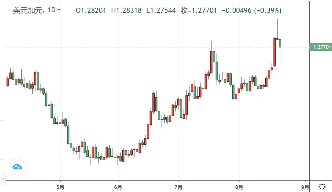 技术上,日图上,8月20日录得射击之星后,美元兑加元承受抛售压力。若跌破1.2760,该货币对将进一步下跌至1.2720的水平支撑位。自1.2422的低点以来的上行趋势线为多头最后的希望,若日内收盘于该看涨趋势线下方,则将重新指向位于1.2641的8月19日低点。