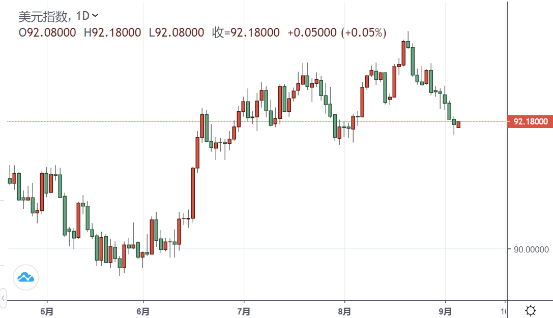 继8月美国ADP新增就业远低于预期后,上周五美国8月非农就业数据也大爆冷,促使美元指数走跌,黄金与美债收益率上涨。美国劳工部周五公布8月非农新增就业23.5万人,远低于市场预期,创下今年1月以来最差表现,失业率则降低至新冠疫情爆发以来新低,报在5.2%,符合市场预期。鲍威尔曾多次表明,美联储开始缩减购债前,需要看到更强劲的就业数据,而令人失望的非农就业报告,可能会改变美联储对量化宽松(QE)退场时间的预期。