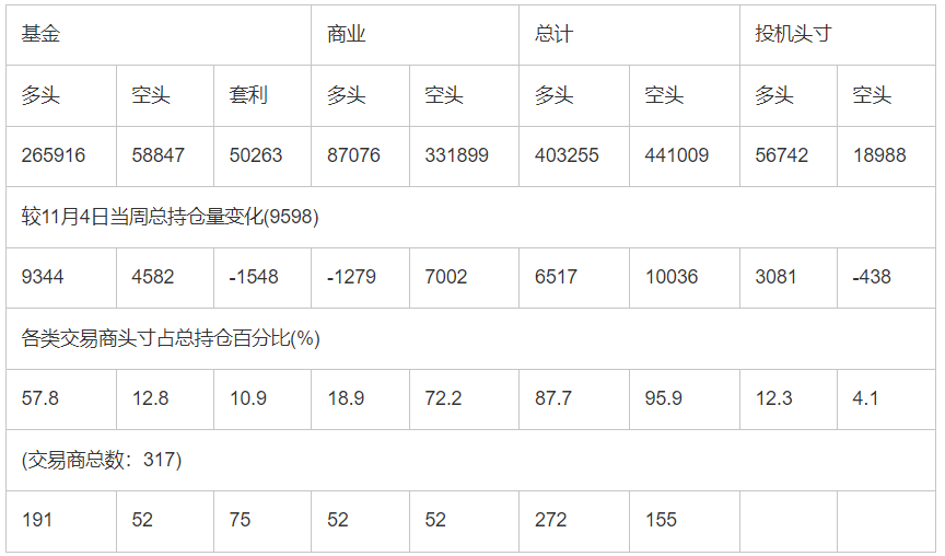 截止11月10日当周COMEX(纽约商品期货交易所)黄金期货分类持仓报告: