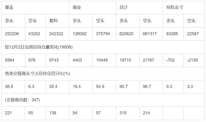 截止12月9日当周COMEX(纽约商品期货交易所)黄金期货和期权分类持仓报告: