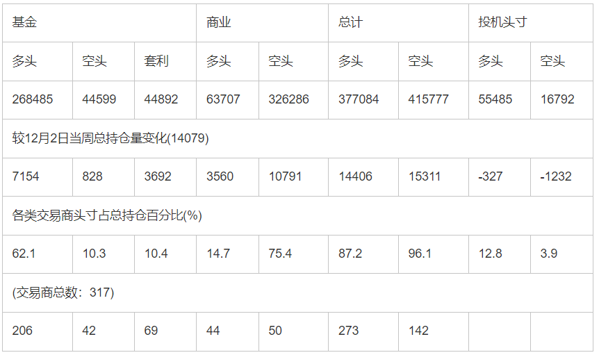CFTC:截止12月9日当周COMEX(纽约商品期货交易所)黄金期货和期权持仓报告