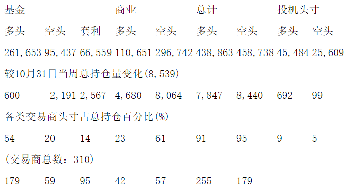美国商品期货交易委员会(CFTC)最新公布截止10月31日当周COX黄金期货分类持仓报告: 合约单位:100金衡盎司总持仓量:475808