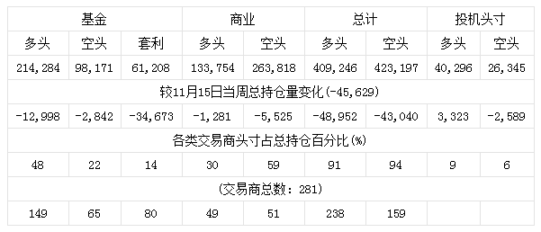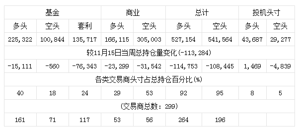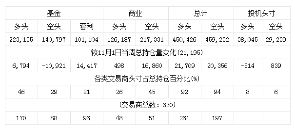 美国商品期货交易委员会(CFTC)最新公布截止11月22日当周COX黄金期货分类持仓报告: 合约单位:100金衡盎司总持仓量:449542