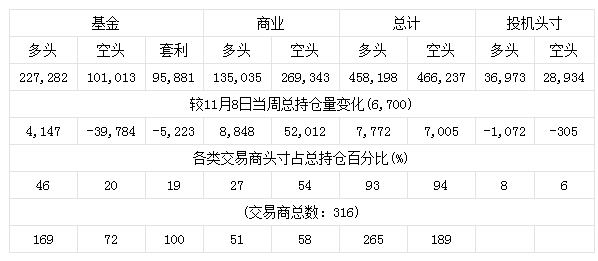 美国商品期货交易委员会(CFTC)最新公布截止11月8日当周COX黄金期货分类持仓报告: 合约单位:100金衡盎司总持仓量:488471