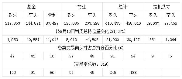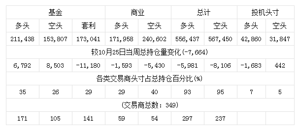 美国商品期货交易委员会(CFTC)最新公布截止11月1日当周COX黄金期货和期权分类持仓报告: 合约单位:100金衡盎司总持仓量:599297