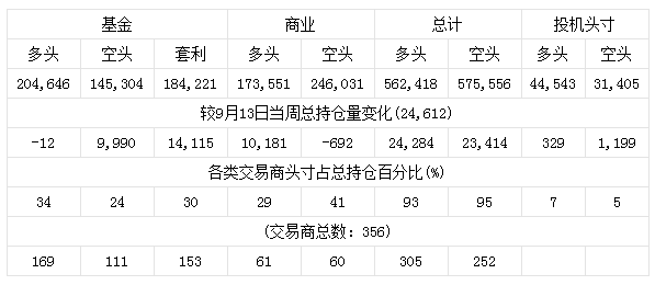 美国商品期货交易委员会(CFTC)最新公布截止10月25日当周COX黄金期货和期权分类持仓报告: 合约单位:100金衡盎司总持仓量:606961
