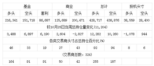 美国商品期货交易委员会(CFTC)最新公布截止10月25日当周COX黄金期货分类持仓报告: 合约单位:100金衡盎司总持仓量:456072