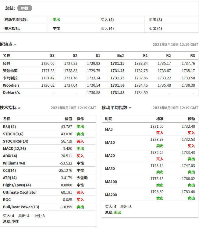 周二(8月10日)亚市盘中,现货黄金价格小幅上涨一度触及1735美元,但短线来上行动能有限,技术面惊现不祥之兆,黄金后市前景堪忧! 现货黄金周一跌至逾四个月低点,在亚洲早盘交易中,黄金价格一度跌至1700美元以下,跌幅高达4.4%,但之后收复了部分失地;因强劲的美国就业数据提振美联储将提早缩减经济支持的预期。